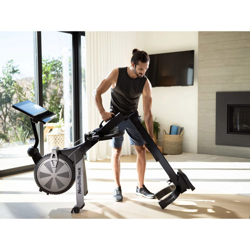 Front-mounted transport wheels provide easy maneuvering so you can tuck this rower out of the way after your workout