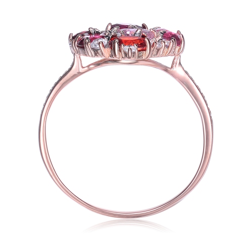 Rozzato Sterling Silver Rose Gold Plated Ruby Cubic Zirconia Coctail Ring Size 6