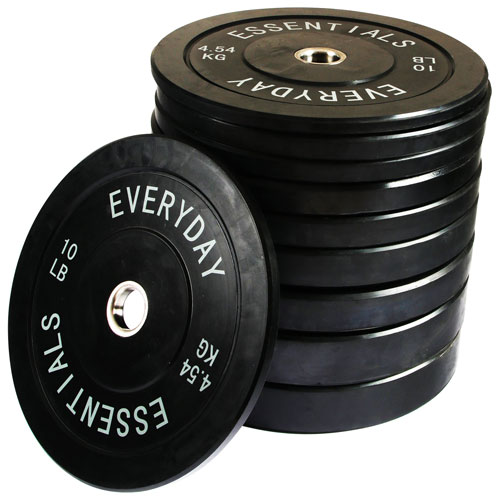 Includes two 4.5kg (10lb), two 6.8kg (15lb), two 11.34kg (25lb), two 15.88kg (35lb), and two 20.41kg (45lb) weight plates