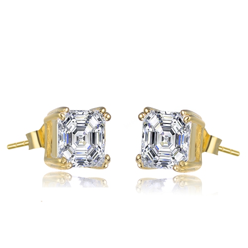 Rozzato Sterling Silver Gold Plated Cubic Zirconia Square Stud Earrings