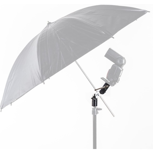 The holder has two reserved interface at the top and bottom, and the interface is designed with mandrel hole which can be installed horizontally or vertically to such light stands and adapter screws of the diameter less than 15mm; Allows to be installed horizontally or vertically; Aluminum Hot Shoe holder with build in umbrella holder. Supports umbrellas of shaft diameter less than 10mm, with independent locking screw; Using large handle of 70mm, clamp-type locking design, with the advantage of energy saving and large bearing capacity.