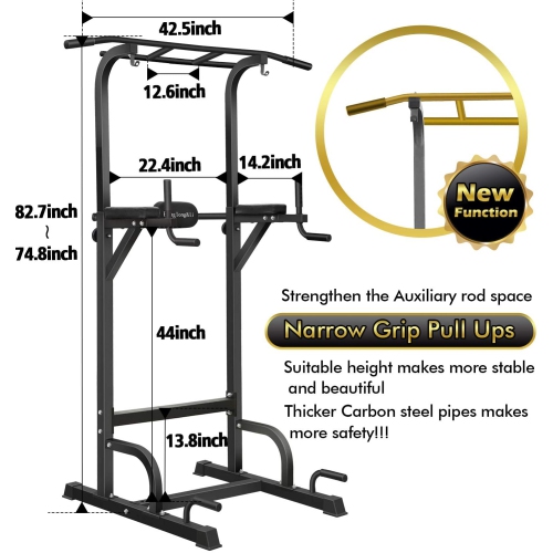 ·【HIGH QUALITY GUARANTEE】The sturdy power tower is made of thick heavy-duty steel structure with high-density foam rubber handles and handrails. All nuts are non-slip nuts. To prevent the nut from falling during vibration.