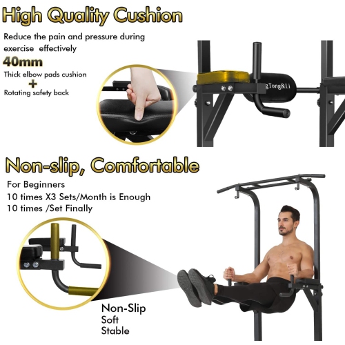 ·【COMFORTABLE WORKOUT STATION】 The power tower has a stable backrest and elbow pads, which can effectively reduce body pressure and avoid sports injuries.