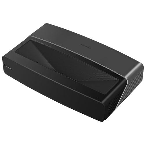 100-inch ambient light-rejecting projection screen delivers crisp picture quality, even in a bright room