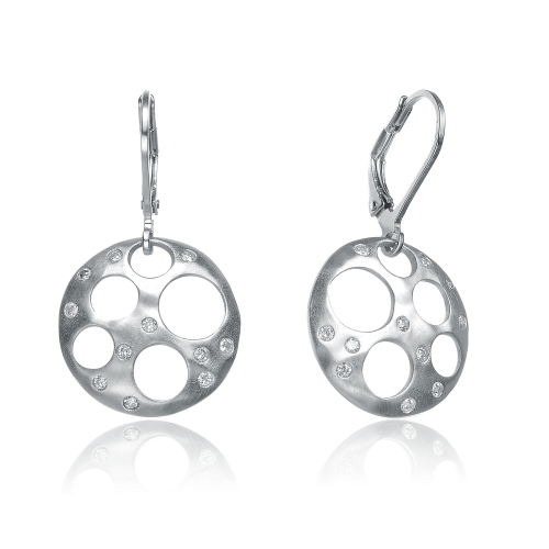 Rozzato Sterling Silver Cubic Zirconia Bubble Brushed Earrings