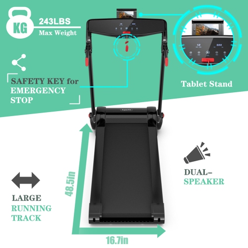 This Fitness Treadmill features a fitness APP and phone holder that will add entertainment and accessibility during any workout routine. Besides, it features a digital monitor that tracks your speed, time, distance, pulse and calories which makes it easier to track your fitness goals. What's more, the spacious running area and wear-resistant running belt provide you comfortable exercise experience, and the safety key provides you a double protection. With folding and moveable design, it's an ideal sports facility for home, gym, and office. Being a better you is an easier road with our folding electric treadmill!
