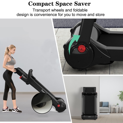 ·Foldable treadmill with wheels makes it convenience for you to move and store