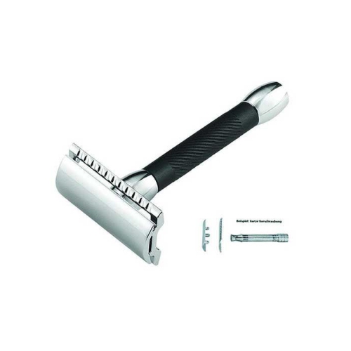 The MERKUR 30C razor is one of the gentlemen in our array. Designed with black aluminum and bright chrome, this safety razor impresses with its elegant appearance. The long handle makes it comfortable while the weight gives you the control to contour your beard effortlessly. With its closed comb and large blade gap, it is gentle to shave and easy to use.