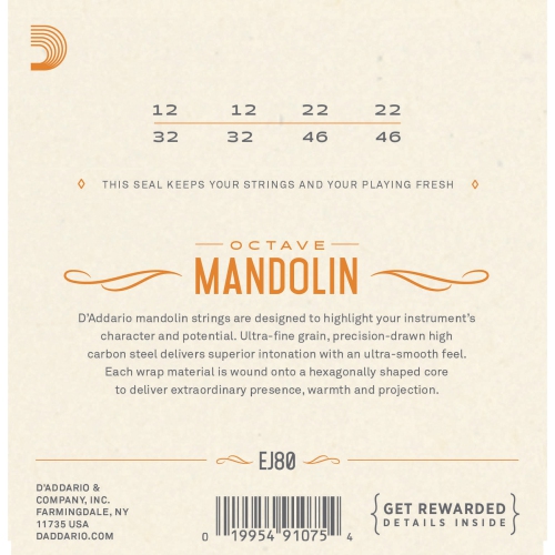 Designed for use with octave mandolins of various scalesLoopend construction for universal fitPreferred for its warm, bright, and well balanced acoustic toneMade in the U.S.A. for the highest quality and performanceString Gauges: Plain Steel .012/.012, Phosphor Bronze Wound .022/.022, .032/.032, .046/.046Environmentally friendly, corrosion resistant packaging for strings that are always fresh