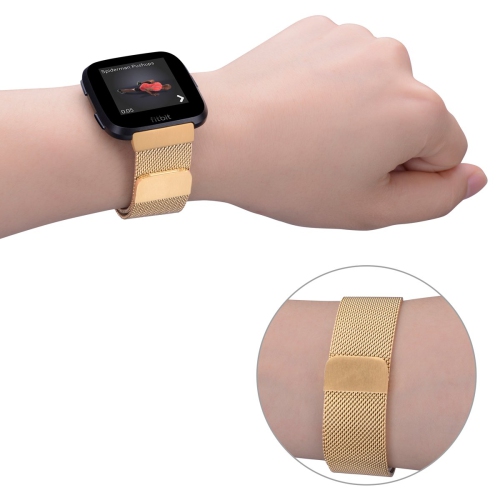 2 PACK Replacement For Fitbit Versa Watch Band Wrist Stainless steel Metal Strap (Gold | Large)