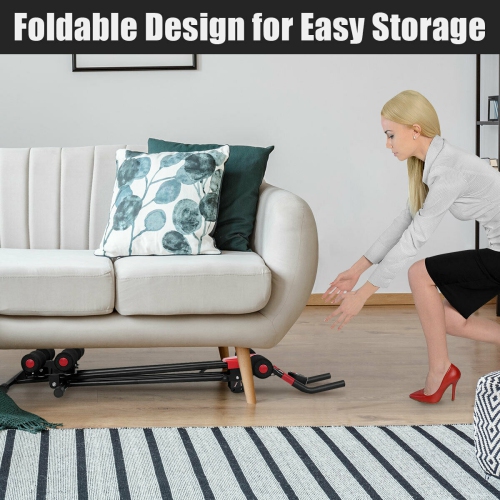 Our fitness machine features a sturdy steel frame that can support up to 220 lbs. The monitorscreen will show the calories burnt, time, and moves per minute. Choose between four resistance levels to gradually increase the intensity of your workout sessions. The power plank exercise machine can be effortlessly set up in no time and does not call for any professional help.