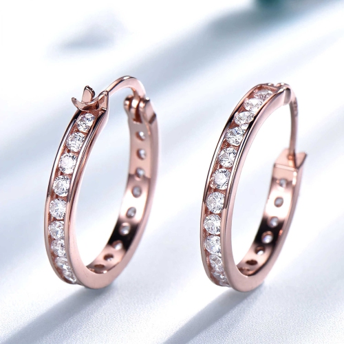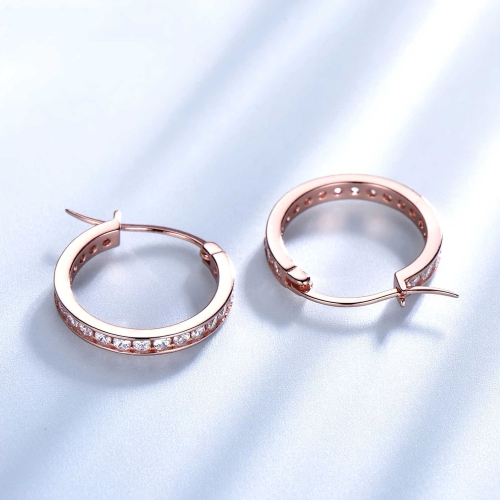 Enjoy sophistication. These stunning huggie earrings feature 0 CTW White color AAA clarity round cubic zirconias in 0.925 rose