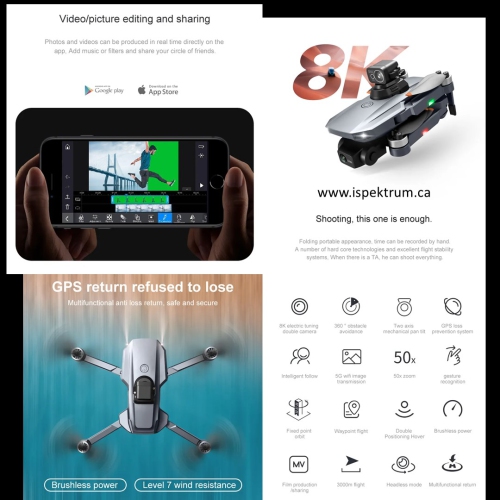 ISPEKTRUM RG101 Pro Drone 8K Dual Camera 2-Axis Gimbal, 30-Min Flight Time RC Quadcopter with Advanced Auto Return, 3km Video Transmission