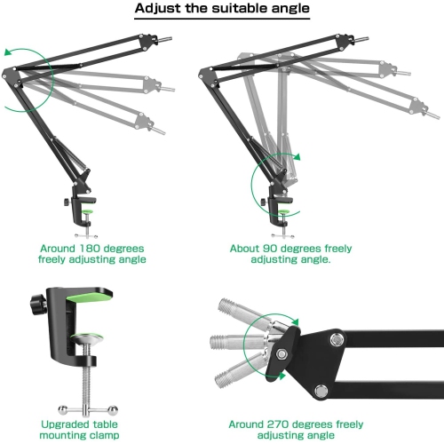 The latest desktop microphone arm stand is widely used and it can be applicable to the majority of standard-sized hand-held microphones and partial condenser microphones, so it goes perfectly with Blue Yeti, Blue Yeti Pro, Snowball and the other microphones. It also fits many places, eg. studios, broadcasting stations and stages and so on.