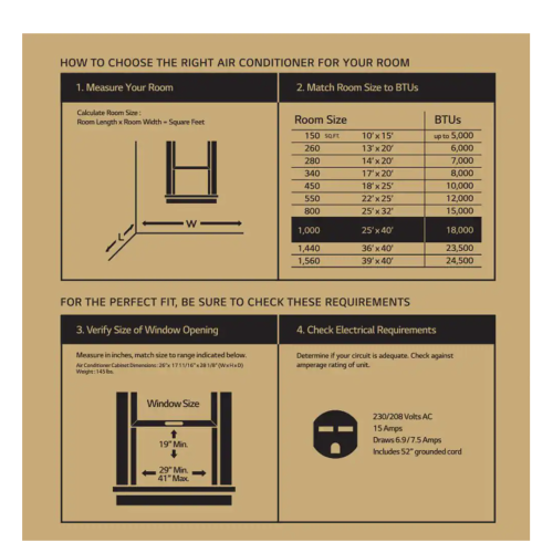Estimated cooling area: 1,000 sq. ft. / room size: 25 ft. x 40 ft.