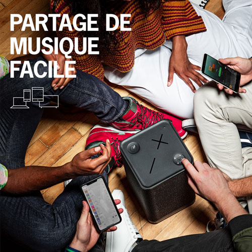 Music-sharing feature allows you to play and switch music from 4 different devices with just a touch of a button