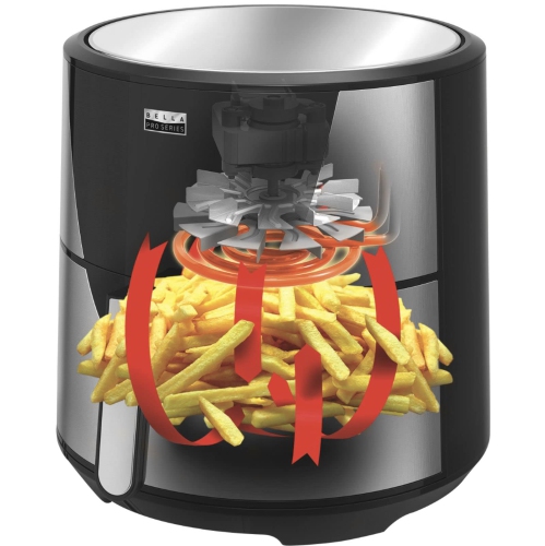 Description:Cook up healthy meals with this Bella Pro Series 8-qt. Digital Air Fryer. The built-in touchscreen makes selecting settings fast and intuitive, while the large capacity lets you cook large meals at once. This 8-qt. air fryer features stainless steel construction for added durability, and the pan and tray are dishwasher-safe for simple cleaning.8-quart capacity, 1700W of power | High Performance Circular Heat Technology | 9 preset cooking programs, Intuitive digital touchscreen | Easy to clean | Stainless steel finish