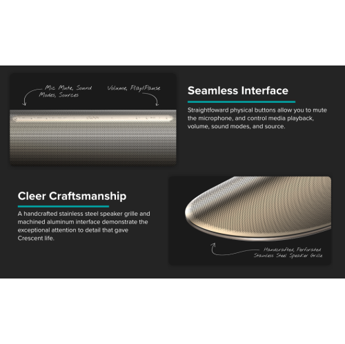 A handcrafted stainless steel speaker grille and machined aluminum interface demonstrate the exceptional attention to detail that gave Crescent life.