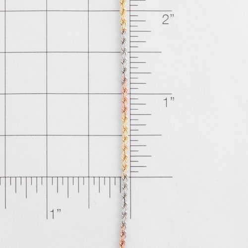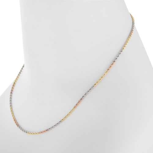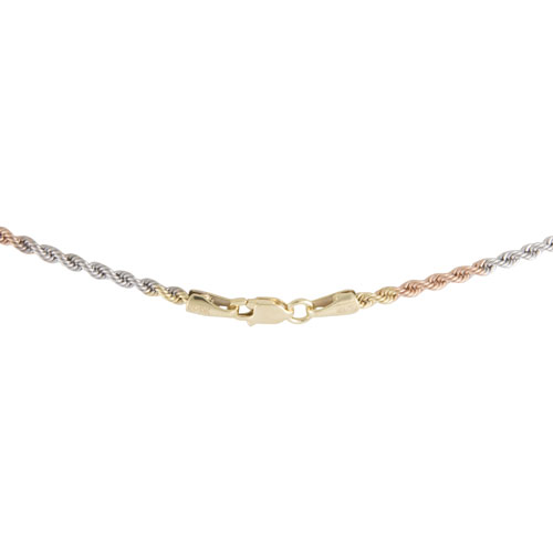 Rope chain is crafted from three colours of 10K gold for eye-catching elegance