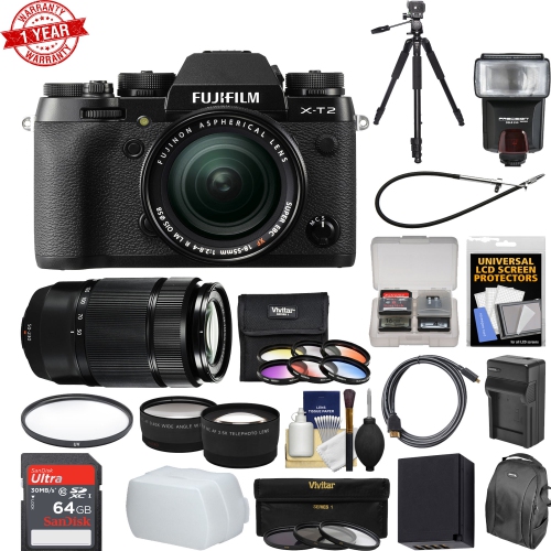 Fujifilm X-T2 4K Wi-Fi Digital Camera & 18-55mm XF Lens w/ 50-230mm II Lens|64GB Card|Case|Flash|Battery&Charger|Tripod|Kit - US Version w/ Seller Warranty