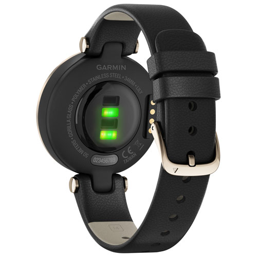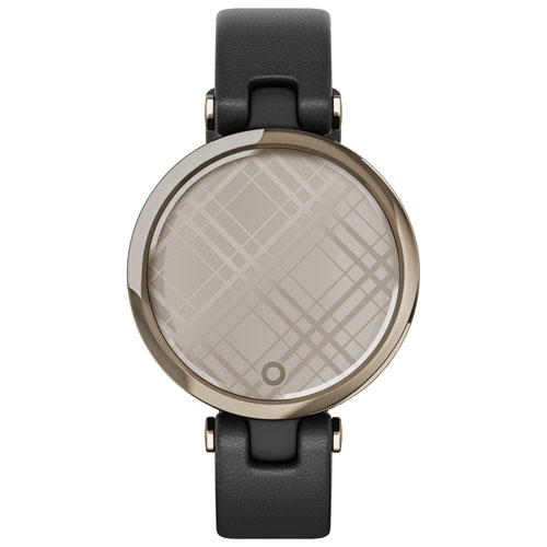 Touchscreen monochrome display with a light-up, patterned lens lets you view your stats with a tap or a flick of your wrist