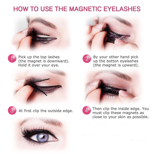 No Glue And No Pain And Irritation Free: So convenient, there is no messiness or clean up with our magnetic eyelashes. New Concept Free Magnetic Eyelashes: Every piece of false Eyelashes come with three magnets, easy to apply. Soft eyelashes roots make eyelashes line up with the curvature of your eyelid.Our magnetic eyelashes are made of high level hand-made ultra soft import fiber will not cause any irritation to your eyes nor damage to your natural eye lashes. No Glue, No Pain.Full Length and Natural Look: These fake eye lashes are long to cover the entire extensions eyelids. You can create the most glamorous look with these 3D magnetic false eyelashes.Surprising 3D Looking: The magnetic false eyelashes cover the whole eyelashes toward the outer corners and give you a glamorous 3D looking instantly.Effortless To Apply and Reusable: Upgraded 3 magnet design Magnetic Eyelashes set make it easy to wear and dont require any glue, can be applied in few seconds. When properly cared and stored, these magnetic fake eye lashes can be used again and again for up to 20 times for women.24 Hours Online Satisfied Customer Service: The professional material insure the quality of item. Please contact our Enlewlth LLC customer service or send email to our company's mailbox, we will give you a satisfied solution in 24 hours.Item Name: Dense Magnetic Eyelashes; Main Material: Import Fiber, Magnetic; Main Color: Black; Eyelash Length: 3.5cm / 1.38"; Eyelash Height(x): 7mm / 0.28", 12mm / 0.47"; 13mm / 0.51"; Eyelash Thickness: 0.2mm / 0.0078"; Weight: 68g / 2.40oz; Package Include: 4 x Dense Magnetic Eyelashes.