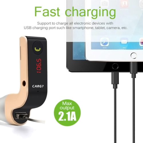 Music Player and FM Transmitter: The FM Transmitter transmits music on your phone, Aux-in port, MicroSD TF card slot or USB port via FM radio.