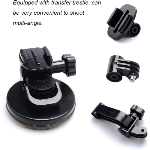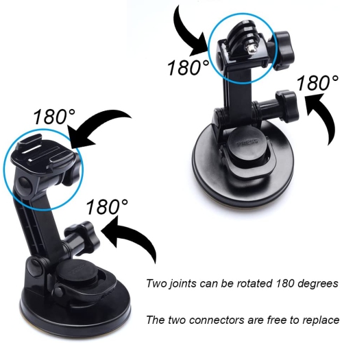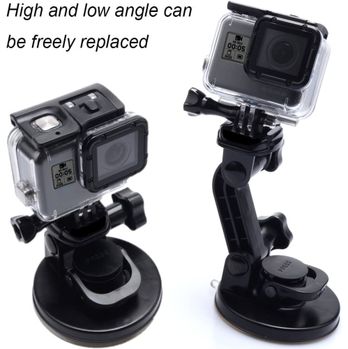 Suction Cup Mount compatible for Gopro Hero 10, Hero 9, Hero 8, Hero 7, Hero 6, Hero 5,Hero 2018 Hero 4, Hero 3+, Hero 3, Hero 2, Hero+, Gopro Max, Session All Gopro Cameras and Sjcam sj4000, sj5000, sj6000, sj7000 Akaso, Campark, and Xiaoyi or other action cameras. Attach your GoPro to cars, boats, motorcycles and more, Great for Apply to Car Windshield and Window as well as no dust, clean and smooth flat surfaces. Once applied, not affected by heat or cold, Very solid. Diameter: 85MM, Two joints can be rotated 180 degress. You can adjust to the angle you want. Suction cup mount provides a broad range of motion and stability, you can enjoy the POV filming, Get unlimited fun shots for your GoPro while driving. Four conversion seats, you can freely replace, low angle 2 pcs, high angle 2 pcs, which are included in the sucker accessories, you no longer need to pay. Instructions: Make sure surface is clean. Use only on slick, smooth surfaces such as glass, metal, ceramic tile,