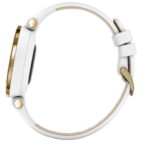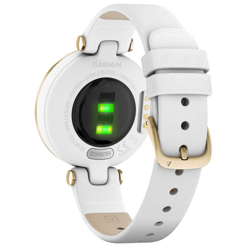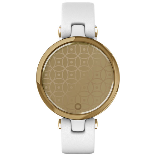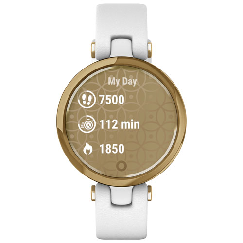 Touchscreen monochrome display with a light-up, patterned lens lets you view your stats with a tap or a flick of your wrist