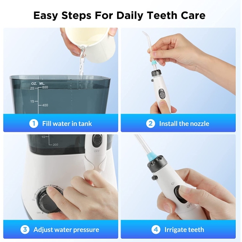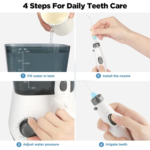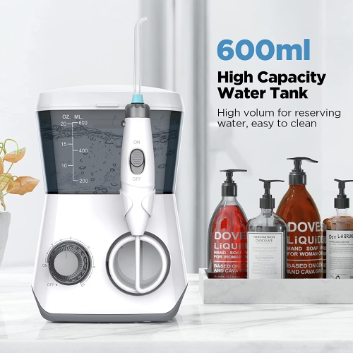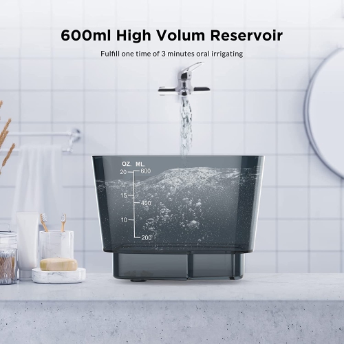 600ML LARGE CAPACITY & LEAK-PROOF DESIGN: Our countertop oral irrigator with 600ML large capacity design, suitable for continuous and uninterrupted water flossing, no need to fill water again and again. Equipped with 130cm retractable high-quality hose, meeting different usage scenarios. Double seal ring design can prevent water leakage and expand water dental flosser's lifespan, which provides comfortable and safe using experience.