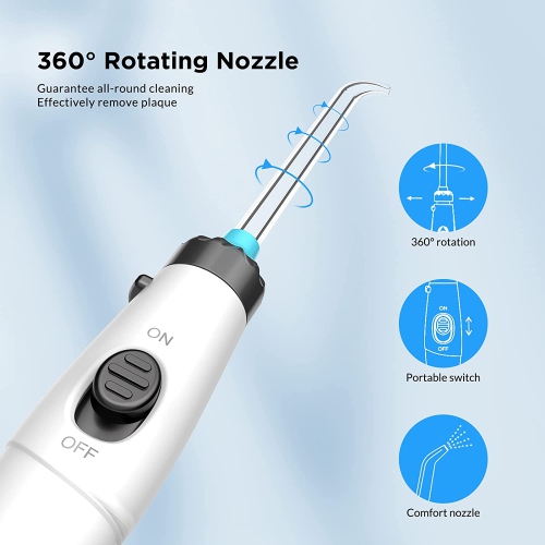 KEEP TEETH CLEAN AND HEALTHY: As we all know, 99.99% of food residues hides in deep gums where traditional manual toothbrush can't reach. Our water flosser can offer high pressure water pulse of 1250-1800 times/min, 30-125 psi strong water pressure to remove 99.99% food residue hidden deeply in our mouth. With 360° rotating nozzles, it can effortlessly and quickly removes teeth stains from even the hardest-to-reach areas to maintain your teeth and gums clean.