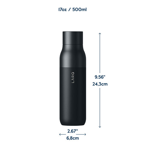 LARQ PureVis 500ml (17 oz.) Stainless Steel Water Bottle with Self-Cleaning Mode - Obsidian Black