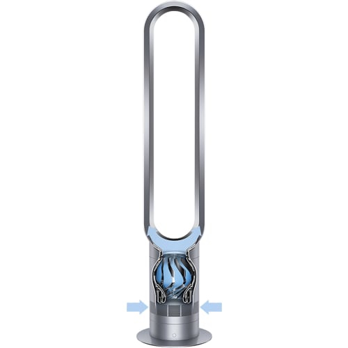 Air Multiplier technology provides high-velocity cooling air flow: Surrounding air is drawn into the airflow and amplified. No blades, no choppy air.Bladeless design for safe operation: Plus, without fast spinning blades or awkward grilles, it's simple to clean.Airflow where you want it: Oscillating design and 10 airflow settings give you more options to tailor your fan to your personal comfort level.Sleep timer: Program your fan to turn off after preset intervals ranging from 15 minutes to 9 hours.Remote control lets you operate your machine from across the room: Lets you select airflow settings from a distance. The curved and magnetized design provides neat storage.Quiet operation: Streamlined air channels reduce airflow turbulence for discreet, unobtrusive operation.