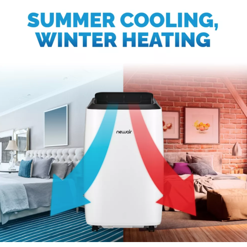 Newair 12,000 BTU Dual Hose Portable Air Conditioner and Heater (7,000 BTU DOE), ClimaSensorTM Remote, Modern AC Design with Easy Setup Window Venting Kit, Self-Evaporative System