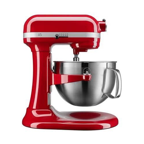 The KitchenAid® professional 5.7 L (6 qt.) bowl-lift stand mixer is perfect for heavy, dense mixtures. It also offers the capacity to make up to 13 dozen cookies in a single batch and 10 speeds to thoroughly mix, knead and whip ingredients quickly and easily. For even more versatility, use the power hub to turn your stand mixer into a culinary centre with over 10 optional hub powered attachments, from food grinders to pasta makers and more. Features: 5.7 L (6 qt.) stainless-steel bowl with comfortable handle Bowl-lift design 10 speeds Includes: 1-piece pouring shield 6-wire whip Dough hook Flat beater Flex edge Specifications: Dimensions (L × W × H): 43.18 cm × 49.53 cm × 45 cm (14 in. × 13 in. × 19.5 in.) Weight: 14.06 kg (31 lb.) Warranty: 1-year limited replacement warranty