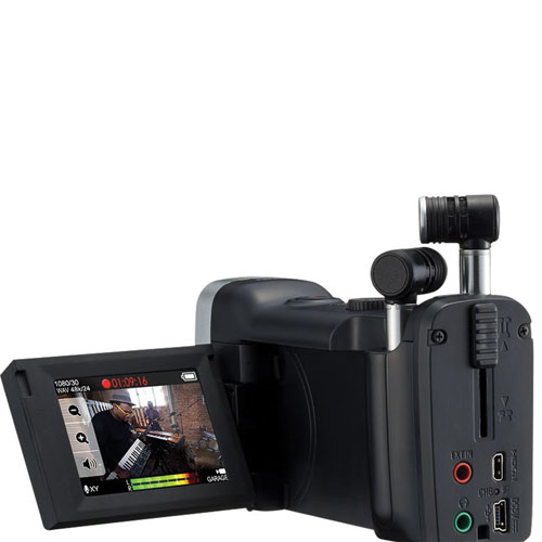 Camcorder can be used as a stand-alone audio recorder, storing data in AAC and WAV formats up to 24-bit/96kHz
