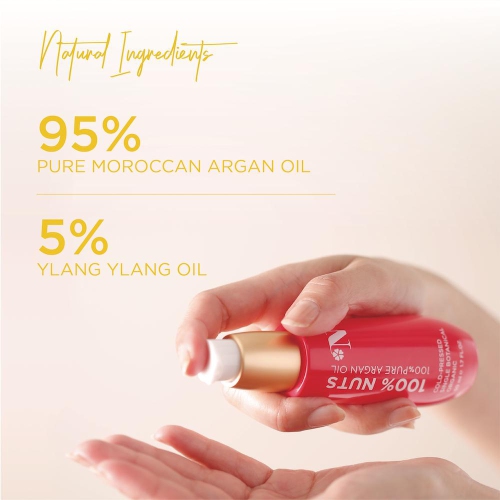 Purify and reinvigorate skin with the 100% NUTS Pure Argan Beauty Nut Oil with Ylang Ylang. Give your skin the ultimate detox and boost with this anti-bacterial powerful oil that will give you an all-natural glow.