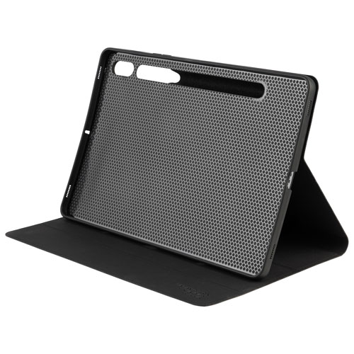 Folio-style case defends the tablet screen and back from everyday damage, without blocking any device features