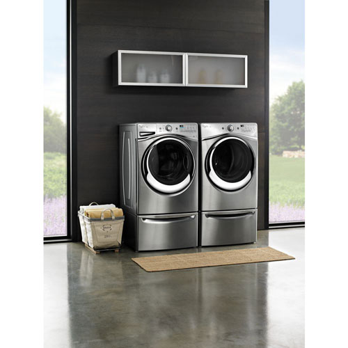This pedestal conveniently raises the height of your front-loading washer and dryer to make loading and unloading clothes a much more comfortable experience