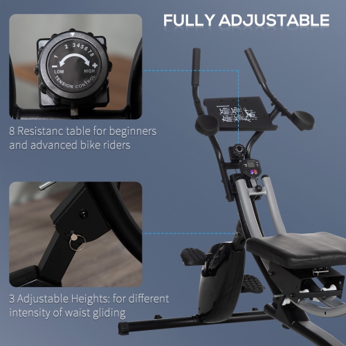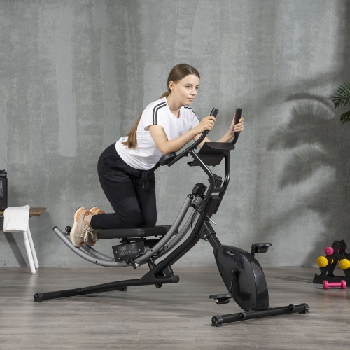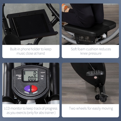 This abs workout equipment with bike trainer from Soozier is made with a steel frame that supports up to 264lbs in weight, it is fitted with thick padded knee to allow you to work out comfortably. An integrated LCD monitor that provides information about calories burnt, count and time, allowing you to monitor your progress accurately and easily. Finished with grip pads on the end of ab crunch machine's feet, the floor will be protected whilst you work out on your abs, thighs and more.