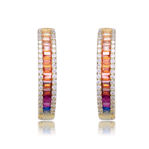 Rozzato 14k Gold Plated Multi Color Cubic Zirconia Hoop Earrings