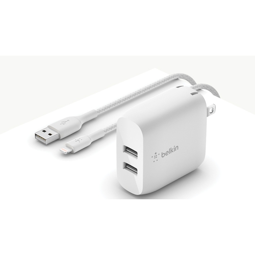 The BOOST↑CHARGE Dual USB-A Wall Charger allows you to conveniently charge two phones, power banks, or tablets at the same time. It's perfect when multiple devices need a charge and space is limited.