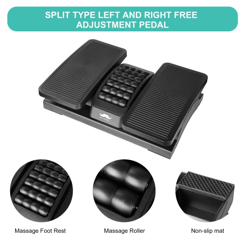 Designed for ergonomic purpose, Moustache® foot rest features Split type pedal - left and right free adjustment. This mainly helps you sit with your feet spread apart to maintain a correct sitting posture thus to get rid of the bad habit of crossed legs.