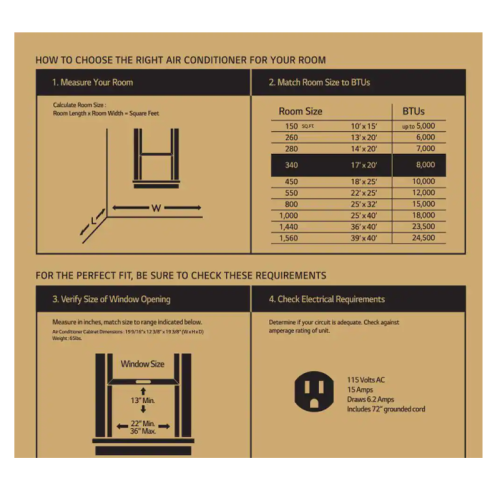 Estimated cooling area: 350 sq. ft. / Room size: 25 ft. x 14 ft.