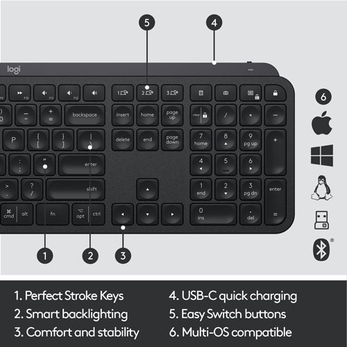 Logitech MX Keys Wireless Backlit Keyboard - English