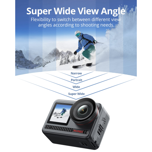 Flexible Multi-view Switching: AKASO Brave 8 camera support super wide/wide/portrait/narrow multi-angle mode, different angles of view can be flexibly switched according to shooting needs. AI face metering mode screen will be based on the recognized face spot metering, can ensure that the face is always in the best exposure effect, achieve more professional portrait photography.