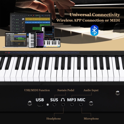 Bluetooth, tremolo and mobile tuning functions customize the sounds of music keyboard