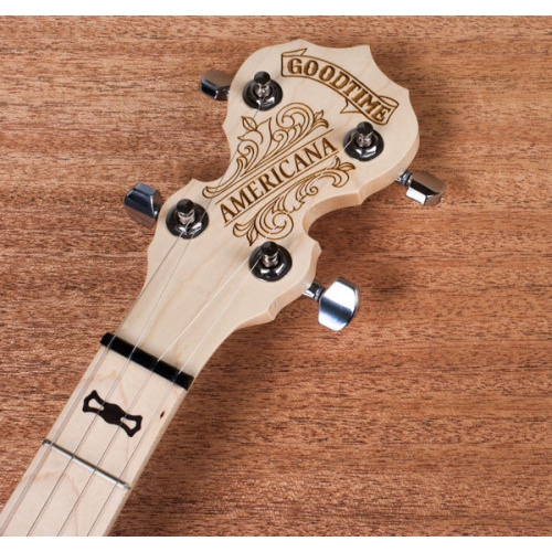 Continuing the long standing Goodtime philosophy of offering the best value American made banjos available, the Americana is the lowest priced 12" model on the market today and retains the distinctive natural blonde Goodtime aesthetics. In keeping with the rest of the Goodtime line, this banjo also features guitar style tuners, a rock maple neck, nickel plated hardware, and hardwood inlays.