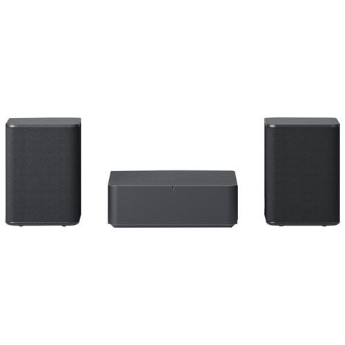 Rear surround sound speakers and center up-firing speaker provide realistic sounds with enhanced voice clarity and surround effects