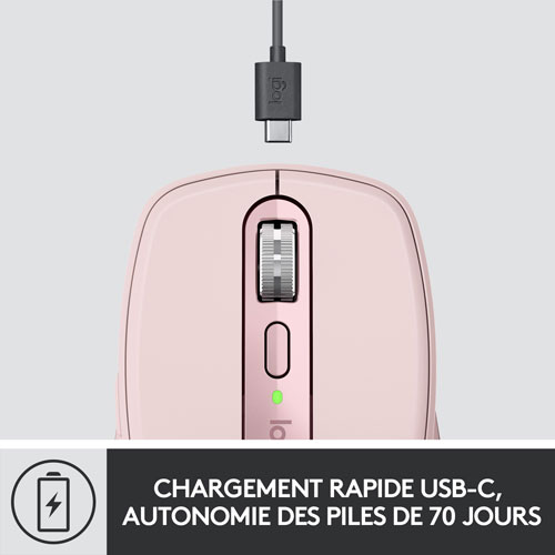 Rechargeable mouse with battery life indicator lasts up to 1680 hours on a full charge and a quick 1 minute charge provides up to 3 hours of use